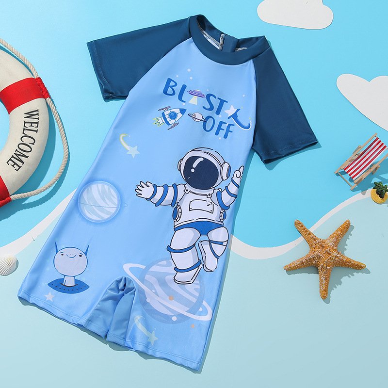 Kids' swimsuit made from high-quality materials to ensure comfort and flexibility while swimming. Attractive design suitable for kids, with a variety of colors and patterns to match your child's taste. Provides sun protection and dries quickly for all-day comfort.