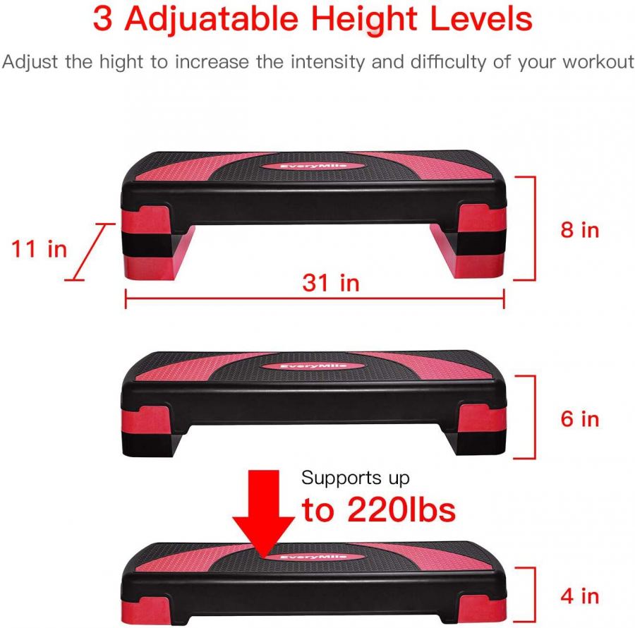 3 Adjustable Height: Challenge your workout with 3 settings of adjustable height (4" to 6" to 8"), you can raise or lower the height according to your requirements.