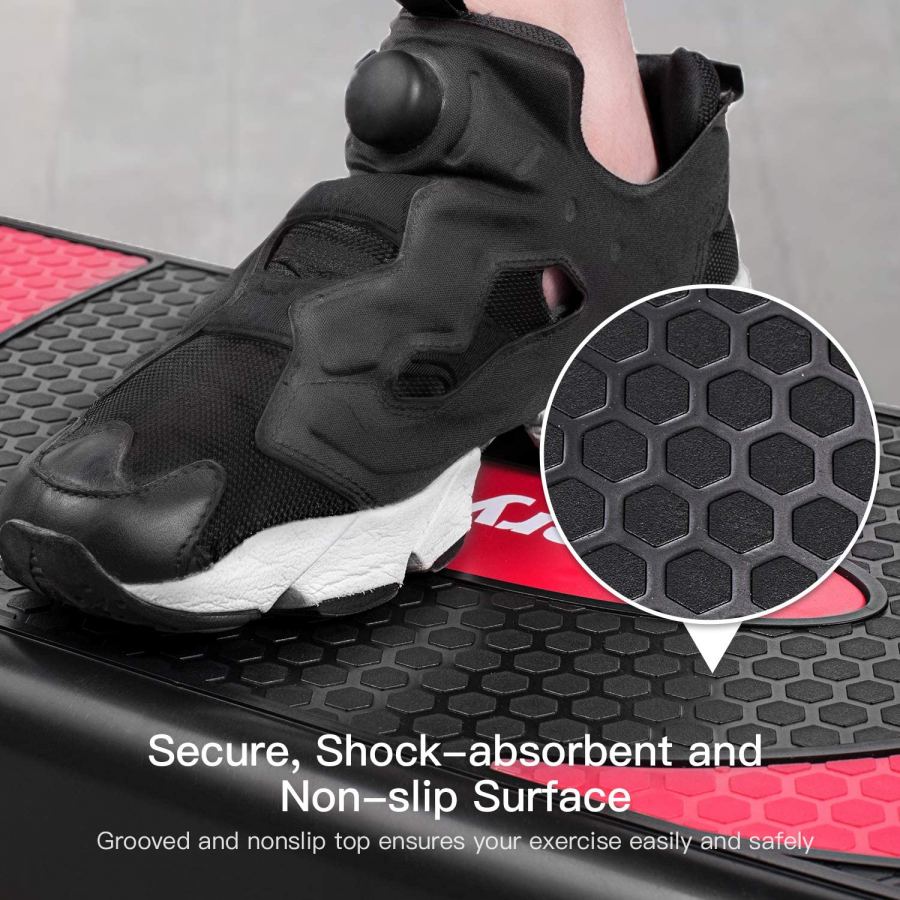Anti-slip Design: Textured surface is non-slip and shock-absorbing, meaning you can have stability with every single set of steps. Also comes with nonskid rubber feet on each riser to prevent it from sliding during exercise and scratching floors. Four additional rubber feet included.