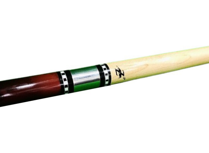 Wooden billiard cue made of two pieces, with a fabric grip that provides a comfortable and secure hold for players. The cue is durable and suitable for both professional and amateur billiard players. The two-piece design allows for easy carrying and storage. The black and red color scheme adds a stylish touch to the cue.