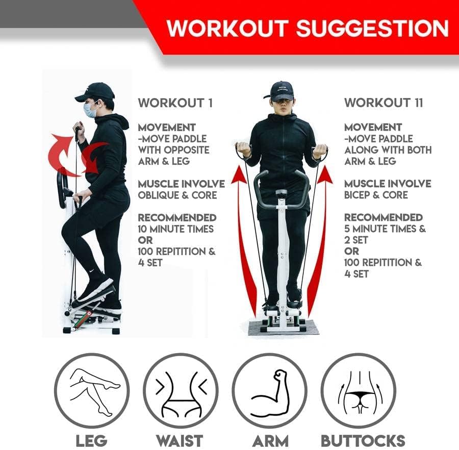 The stepper takes up minimal space and can be placed anywhere in your home, allowing for convenient workouts anytime. Ideal for toning your arms, thighs, waist, and legs, and helps in achieving a perfect body shape.