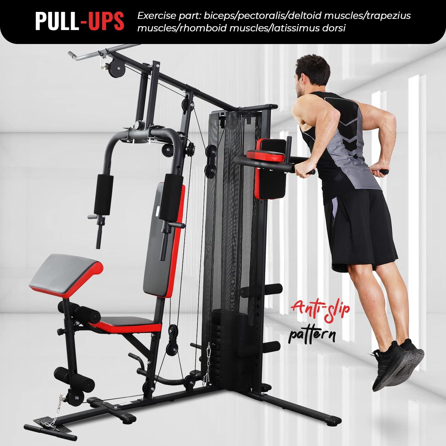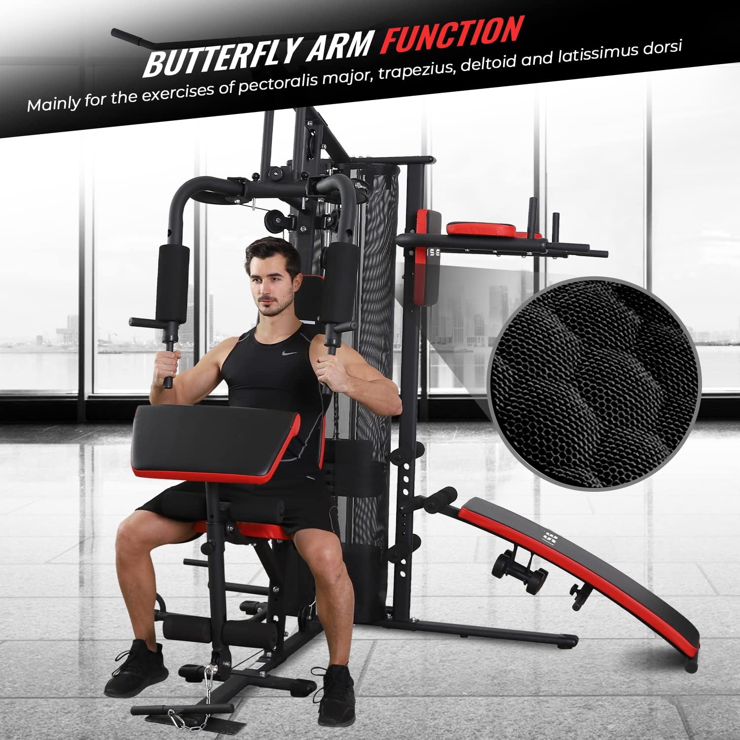 Multi-functional The ISE home gym offers features like a bicep bar, butterfly arms, leg extension, weight bench, and more, allowing you to specifically target your biceps, triceps, and back muscles.