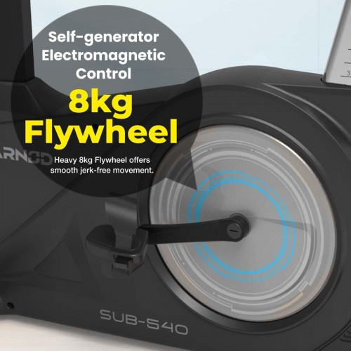 The RV5.0 exercise bike features advanced electromagnetic resistance technology, providing a smooth and quiet workout experience with 24 resistance levels. It is equipped with a 7-inch LCD screen that displays metrics such as speed, distance, time, calories, and pulse. The bike also comes with 12 pre-set workout programs. It allows mp3 connection via Aux and USB, with built-in speakers, and includes a holder for phones, mobiles, or tablets.
