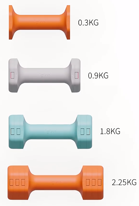 Adjustable dumbbells from 0.3 to 2.25 kg, sold in pairs.