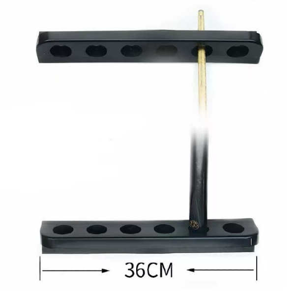 The billiard cue stand is designed for wall mounting with six slots, in black color. This stand provides an ideal space for organizing billiard cues in a stylish and practical way. With its unique design, you can mount it on the wall to save space in the game room. Perfect for billiard enthusiasts who want to keep their equipment tidy and within easy reach.