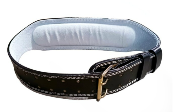 The padded iron belt features a durable and padded design, making it ideal for use in a variety of workouts.