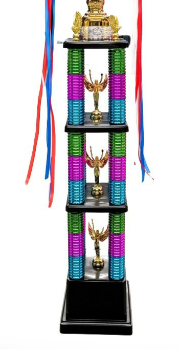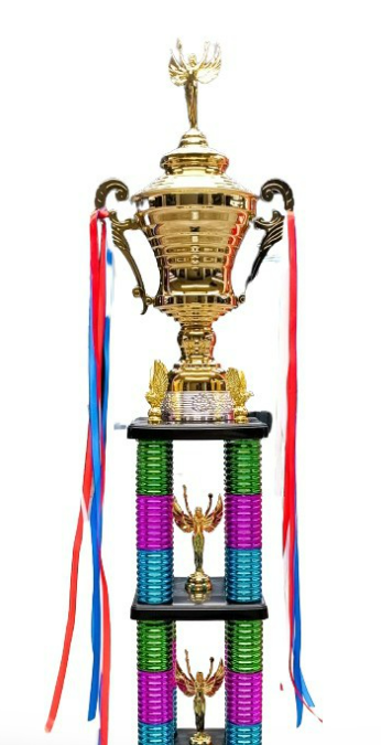• A trophy with an elegant base designed for sports celebrations and special occasions. It features a sturdy plastic base and a top cup made of iron for durability and strength.