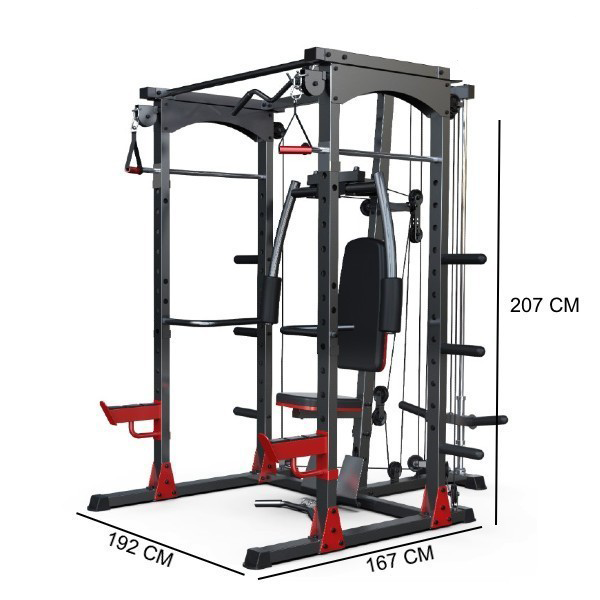 The UP-480 Multi-Exercise Cage is a professional-grade device designed to provide a comprehensive workout experience. It features a net weight of 140 kilograms with compact dimensions:
