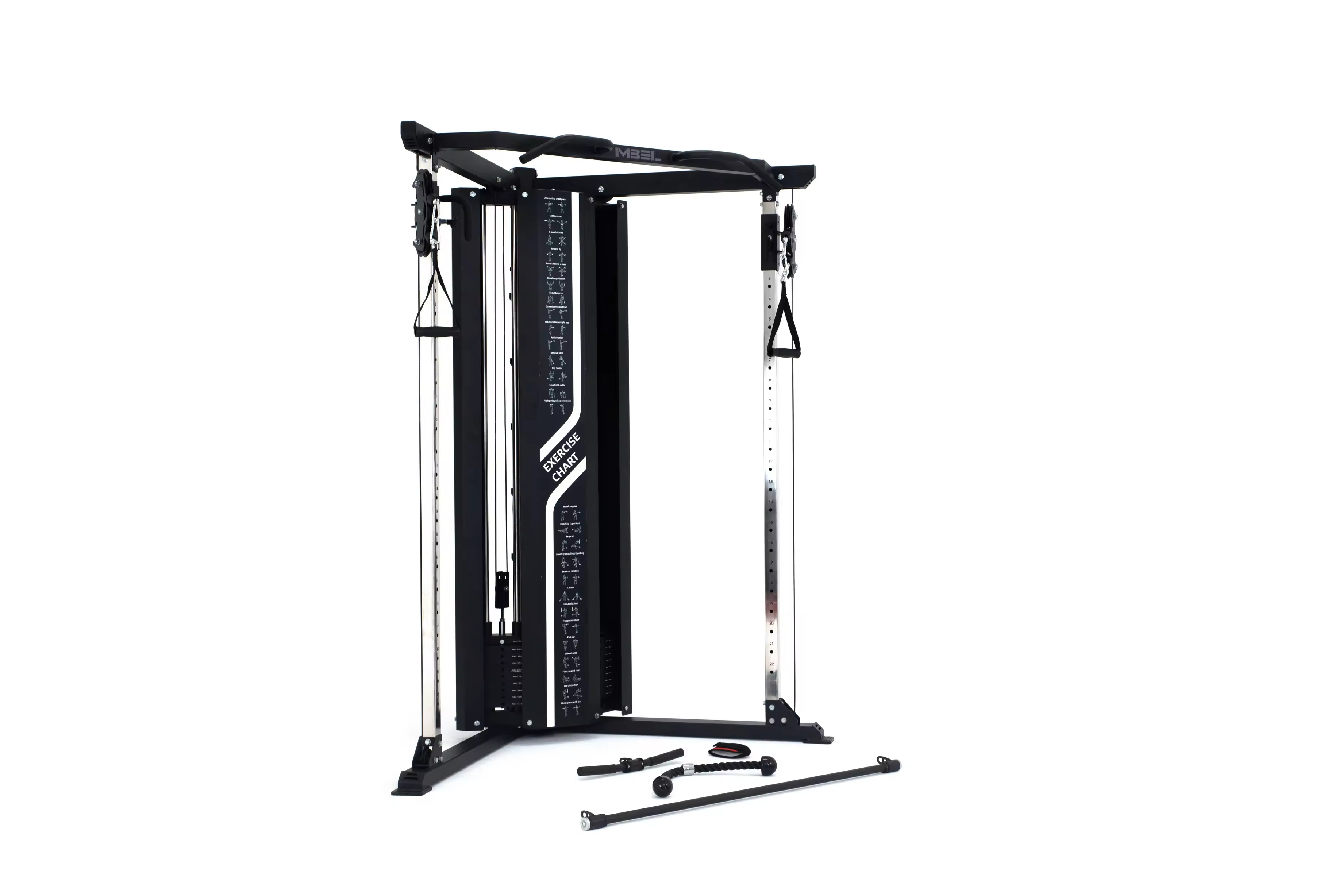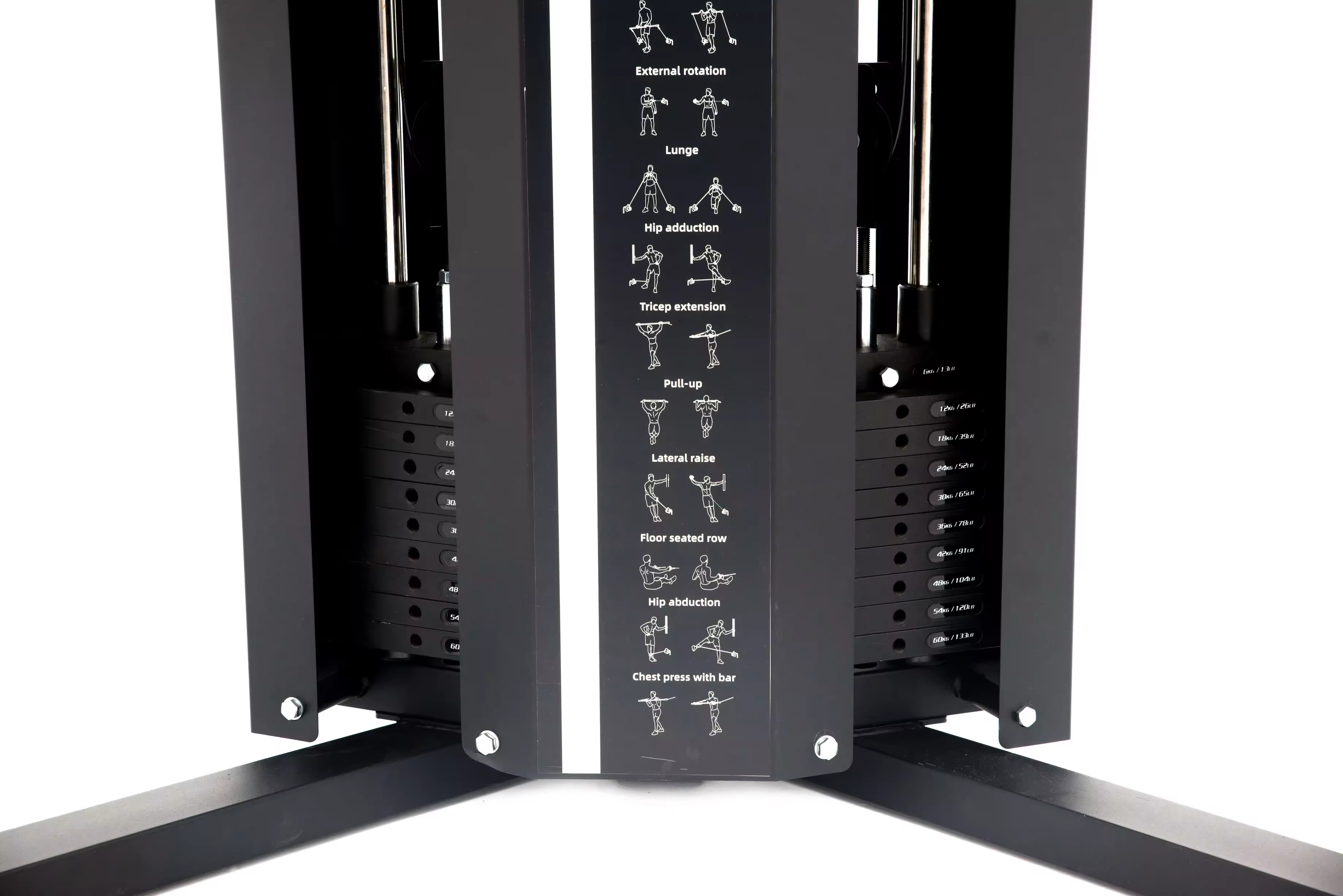 Description: Multi-grip upper pull with vertical posts made of high-strength rust-resistant steel. The device features a 180-degree swivel pulley system, providing a wide range of movements. It also supports a switchable pulley ratio of 2:1 or 1:1 to meet various training needs. Additionally, it includes hook storage and a stainless steel guiding rod 202, along with resistance band rings.