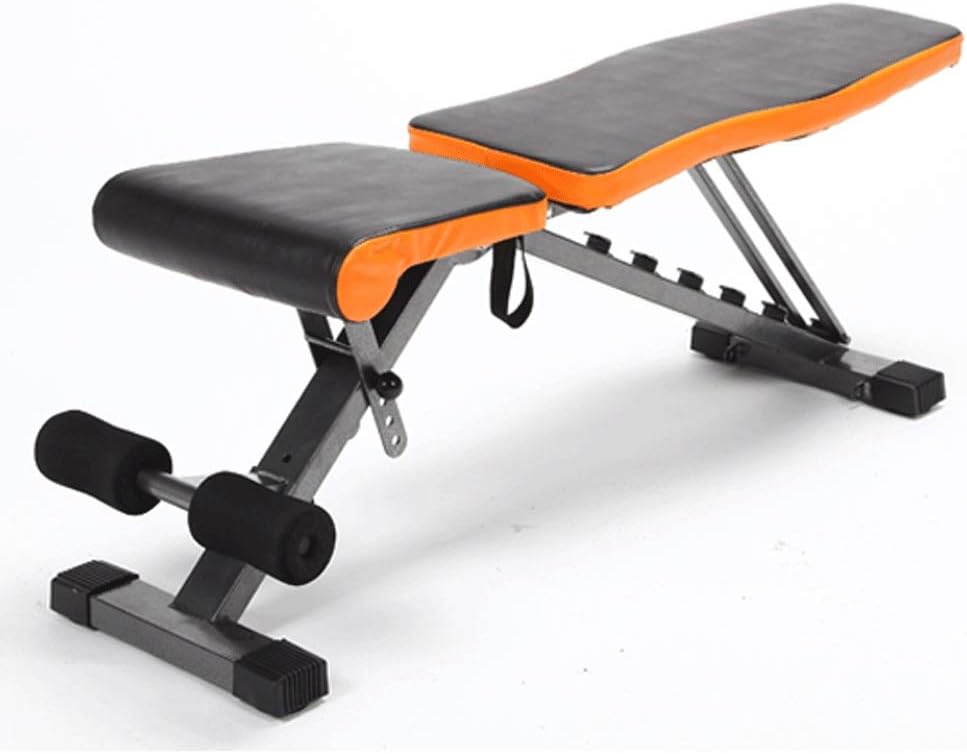 The foldable workout bench can be easily folded, making it simple to carry and store. The backrest is made from high-quality leather filled with soft foam padding (1.8 inches thick). The front and rear feet feature rubber non-slip pads for added stability.