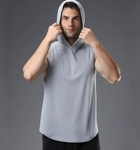 Stylish hoodie tank top designed to provide comfort during daily activities and workouts. Made from high-quality materials, it comes in various colors to suit different tastes. It features a modern and sleek design with a hood, offering a sporty look and warmth during cooler weather. Suitable for everyday use or workout sessions.