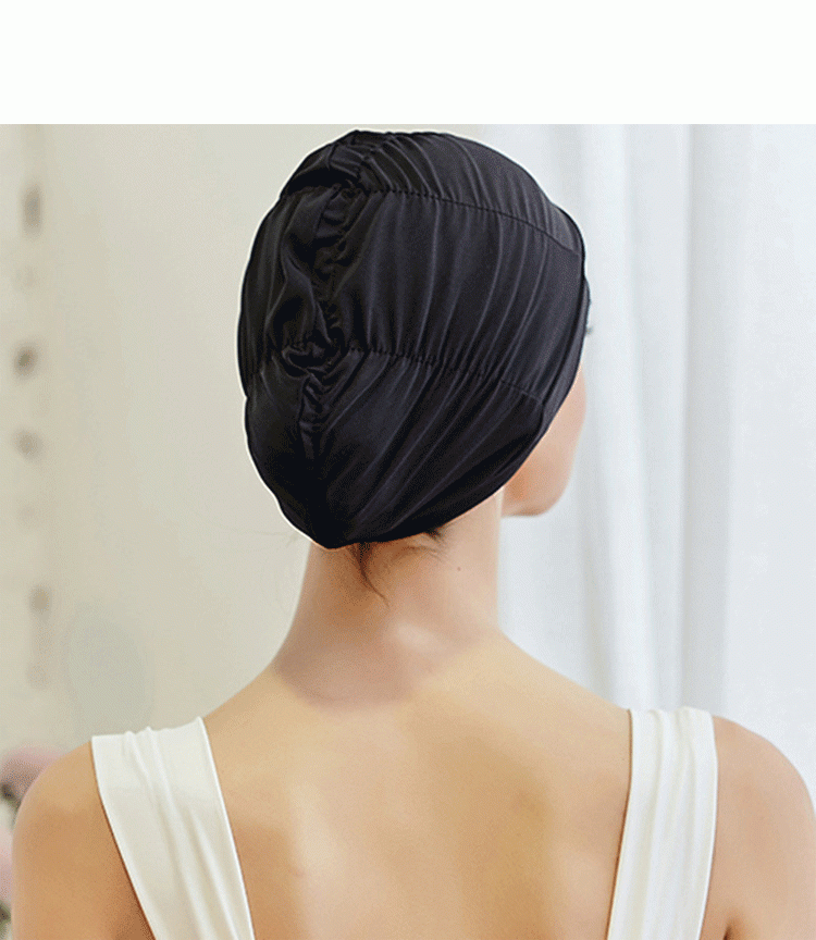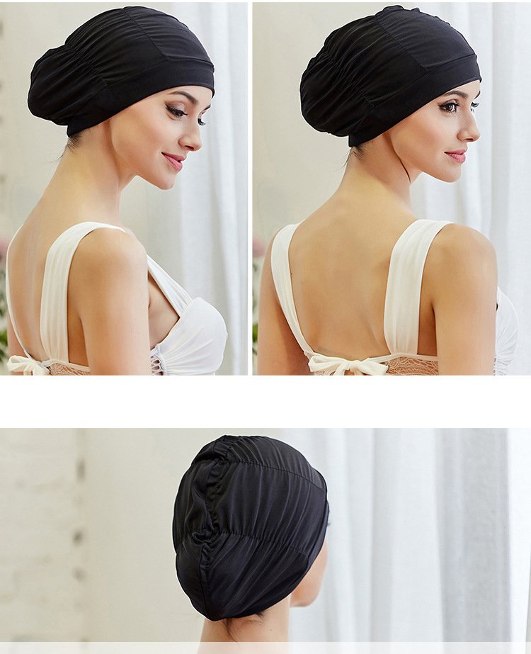 This fabric swimming cap is specially designed for long hair, providing comfort and protection while swimming. Made from flexible, waterproof materials, it fully covers your hair, preventing damage from chlorine or salt. Its comfortable, stretchable design makes it easy to put on and take off without pulling or tangling your hair. Ideal for use in pools or at the beach, offering extra protection for your hair while keeping you stylish.