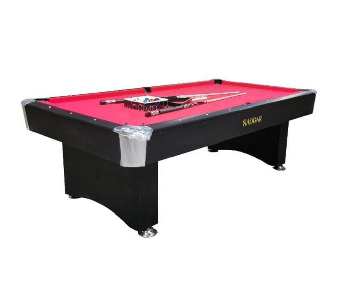 The HADDAR billiard table is made from MDF wood, offering strength and stability to ensure hours of fun for everyone. This best-selling product is known for its high quality and affordable price. The table features a dedicated spot for organizing balls.