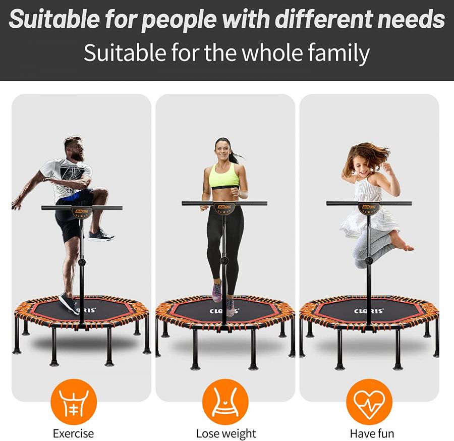 The 120 CM trampoline with stick offers a fun and safe jumping experience. Its innovative design with the stick helps children improve their balance and coordination while playing.